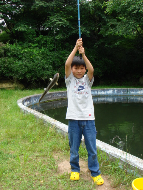 子供も喜んで大きなヤマメを釣り上げて(●^o^●)