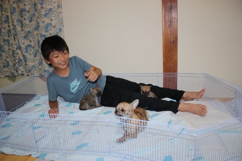 子犬がチョッと大きくなると・・・こんな風に息子までサークルに入って子犬と遊んで癒されてます(^◇^)