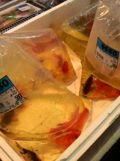 大きな流金。茶金。キャリコなど5匹入って580円でした。